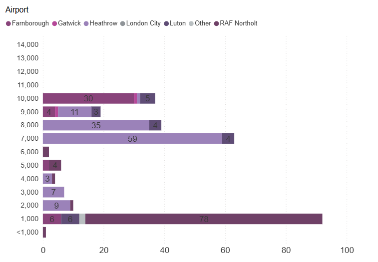 How many aircraft are flying over your area and how does this vary from month to month?
