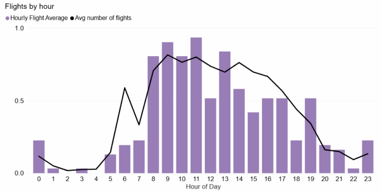 How often do aircraft fly near my area at different times of day?